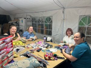Cricket's Creative Workshops are cozy, joy-forward creative gatherings where everyday items are transformed into expressive, wearable art. Using reclaimed textiles, embroidery, trinkets, paint and found materials, participants are invited to experiment, repair, exaggerate, soften or completely reimagine what they bring — no prior art experience needed, just curiosity.